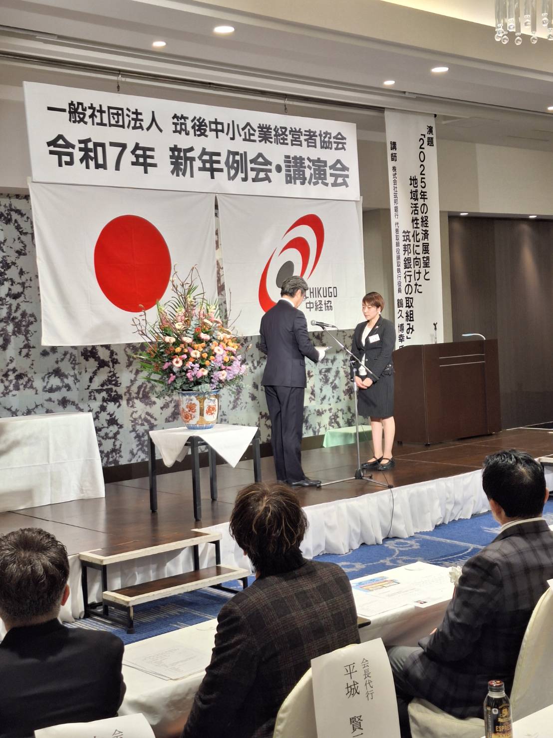 去る1月28日にホテルマリターレ創世にて新年例会を開催しました。講演会の部においては多くの来賓の方々をお招きし、鶴久博幸様(株式会社筑邦銀行頭取)よりご講演を賜り、私たちを取り巻く社会状況について、見識を広める良い機会となりました。今後も例会では様々な講演会を企画していきますので、多くの方々のご参加を心よりお待ちしております。