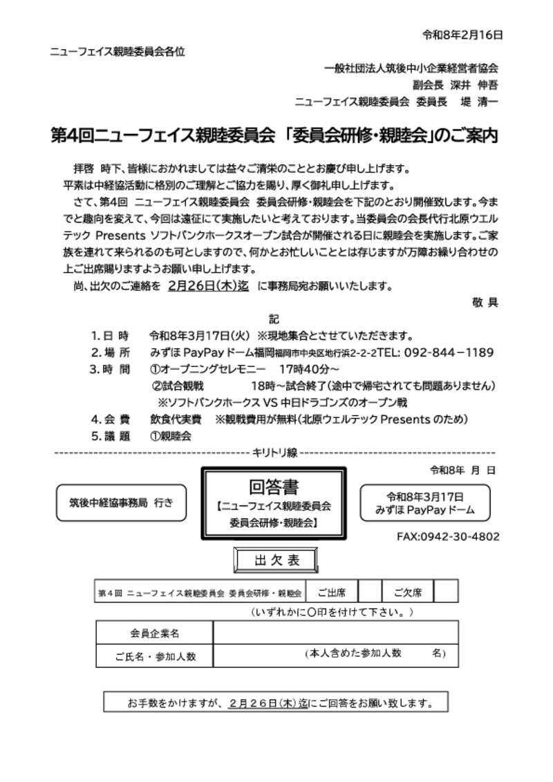 ※添付のご案内状を筑後中経協事務局までFAXにて2/26(木)までにお申し込み下さい