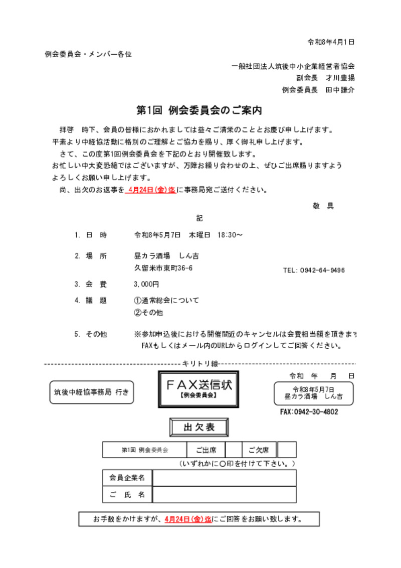 また、新たな年度の第1回目として、委員会後の懇親会を通じて委員会メンバーの更なる親睦を深める。